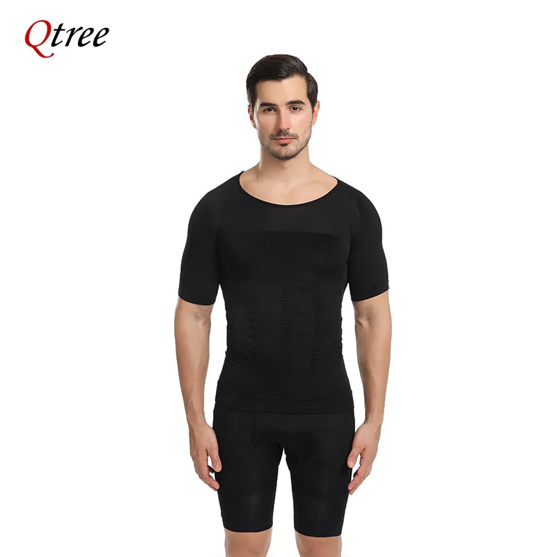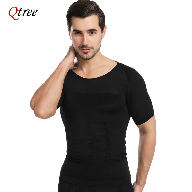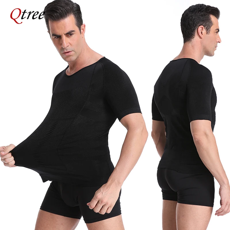 Qtree Men Body Shaper Gynecomastia Compression Shirt Posture Corrector Undershirt Belly Slimming Corrective Waist Trainer Corset