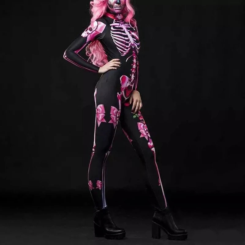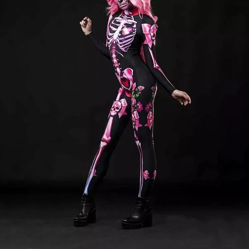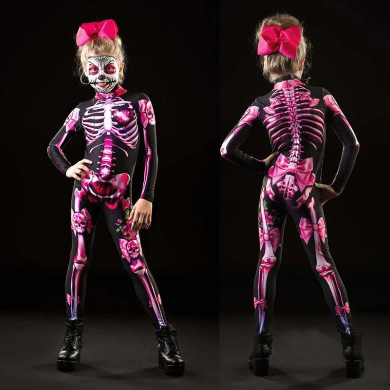 Rose Skeleton Adult Kids Scary Costume Halloween Dress Cosplay Sexy Jumpsuit Carnival Party Baby Girl Rompers Day of The Dead