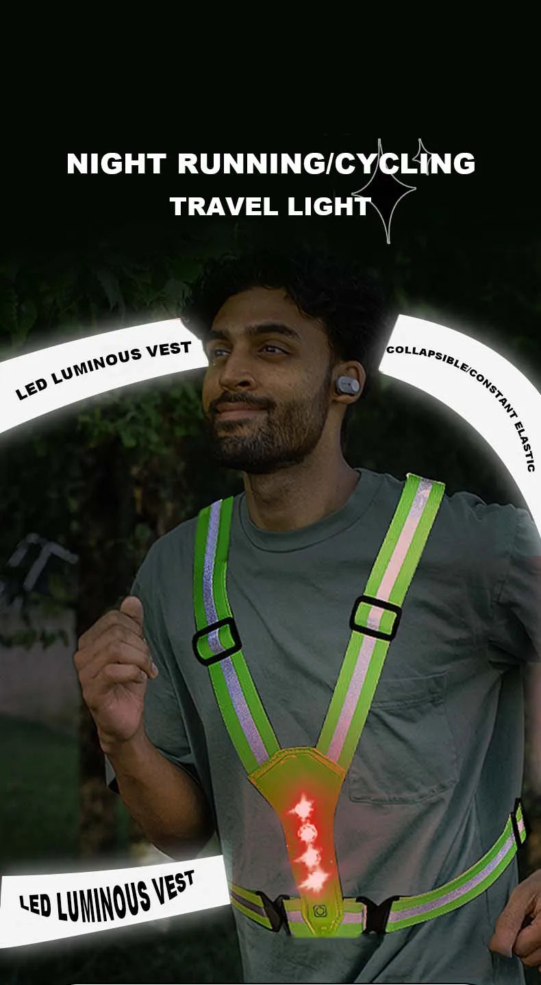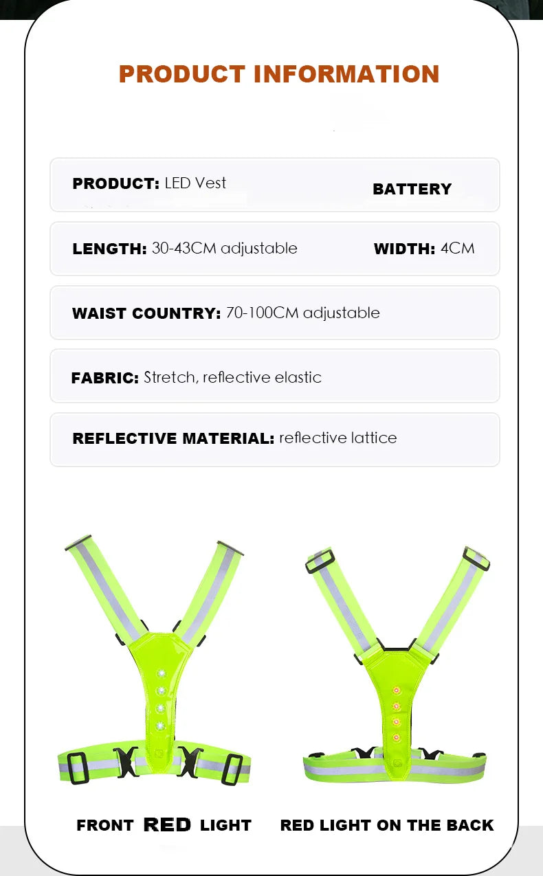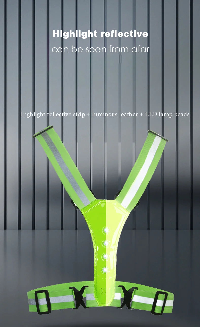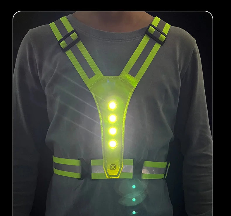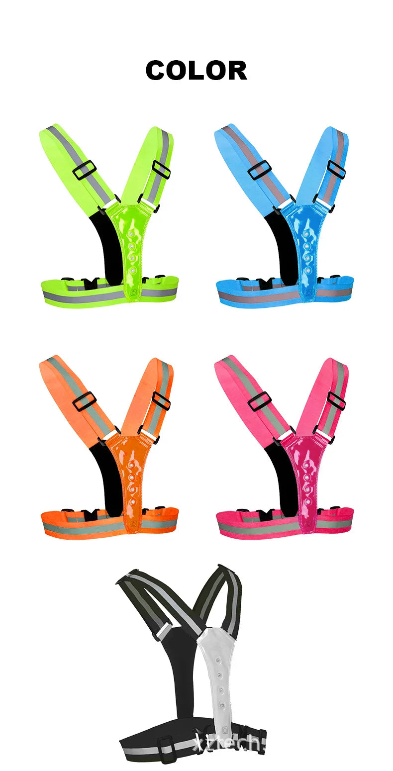 Safety Reflective Vest LED Running Light Adjustable Cycling Vest Night Warning Work Fishing Sports Vest