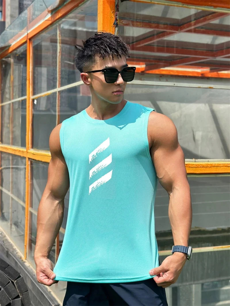 Sports Fitness Vest Sleeveless Quick Dry Breathable Running Top Trend Men's Pull-over Crewneck Mesh Vest Summer New Style