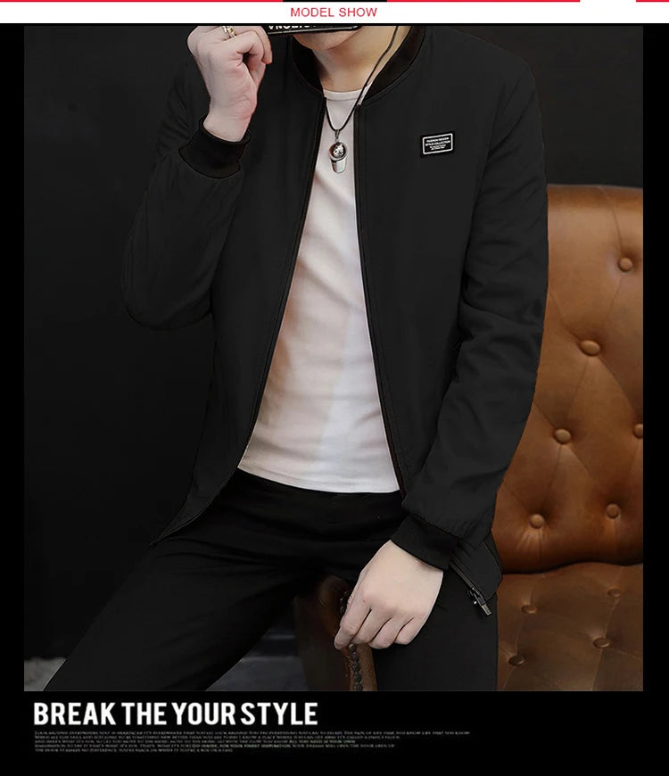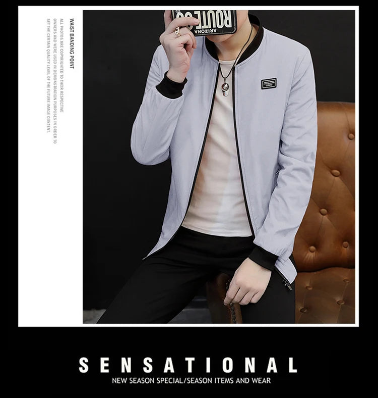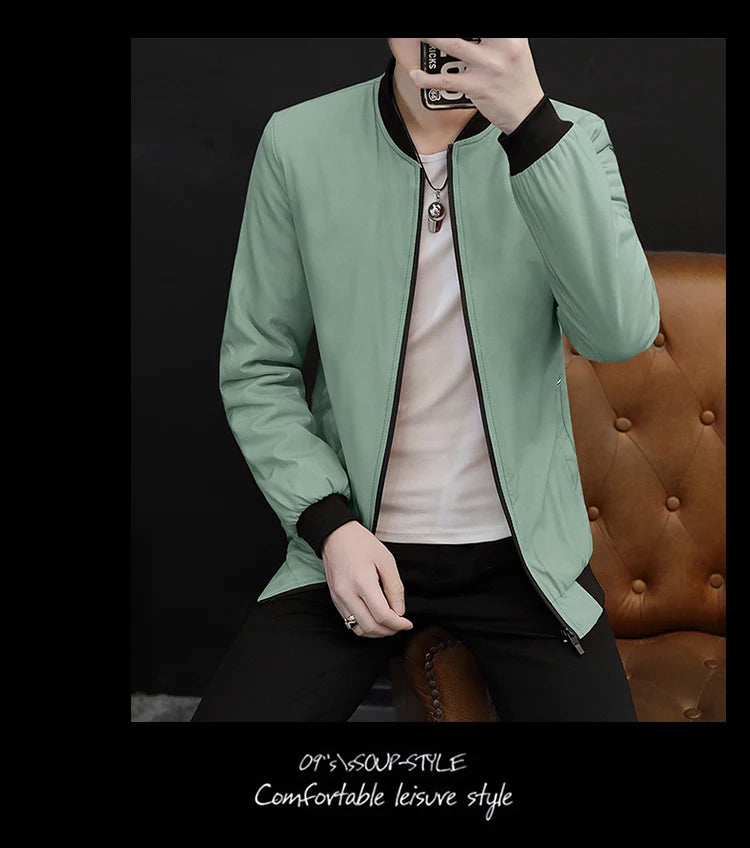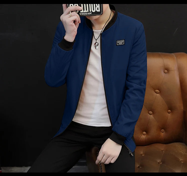 Spring and Autumn New Men's Casual Jacket Coat Solid Baseball Neck Zipper Windbreaker Coat Cycling Suit Versatile Coat