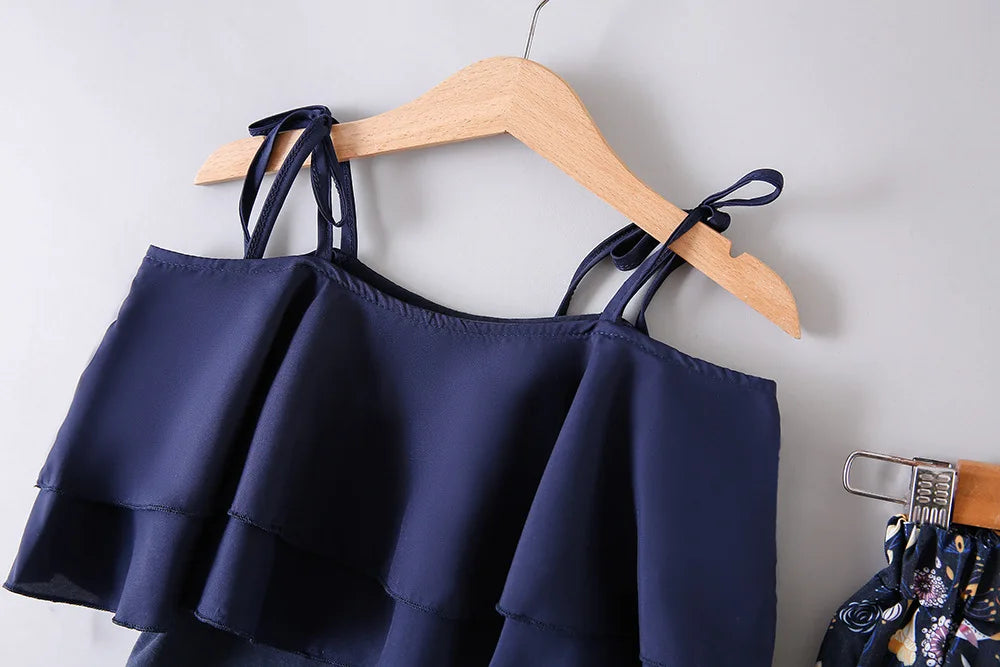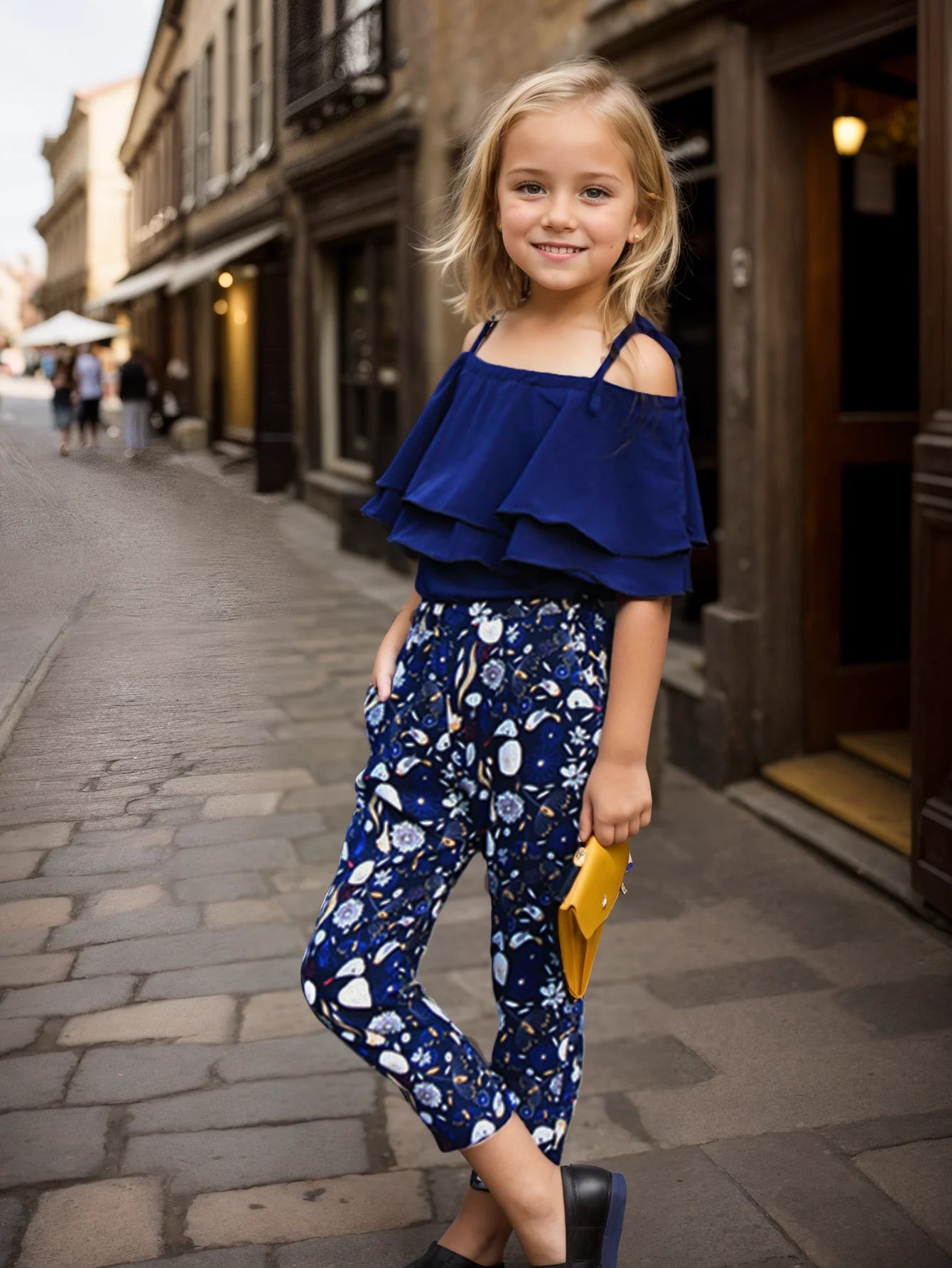 Summer Teen Girls Flower Chiffon Clothing Set Children Off Shoulder tops Floral Pants Kids Outfits Girl Clothes For 8 12 14Years