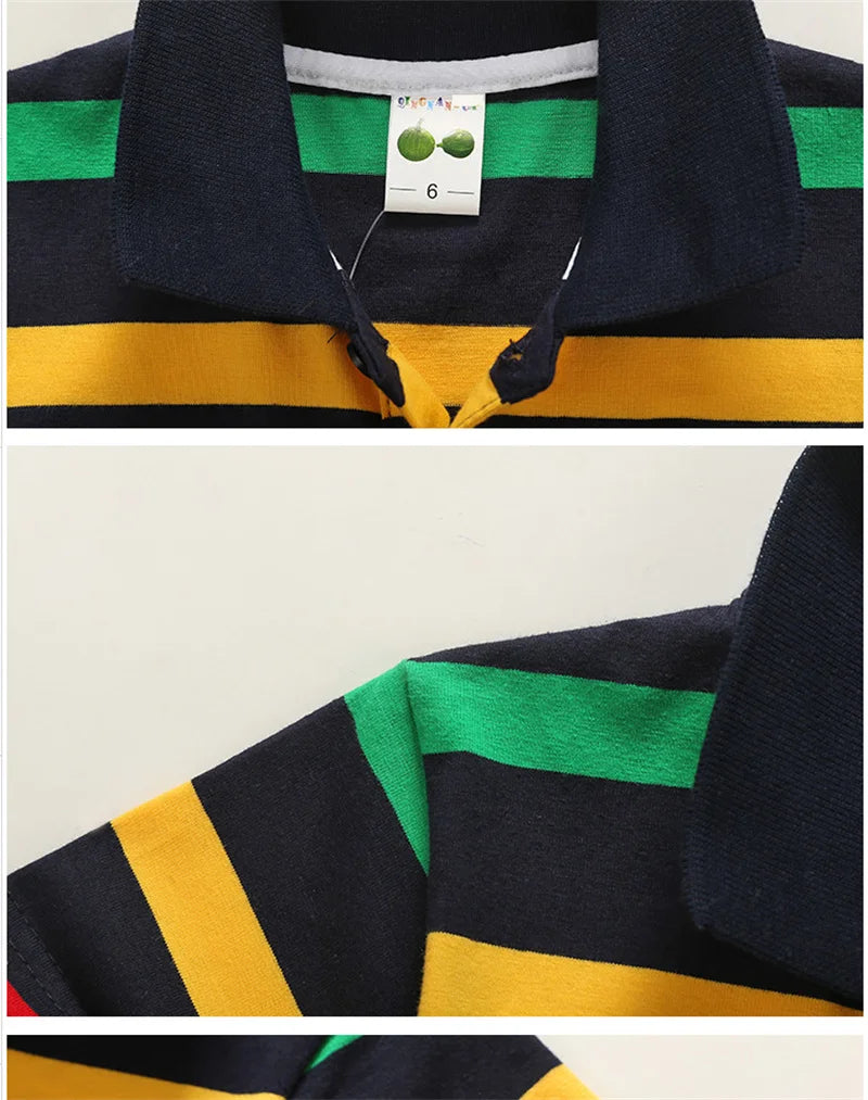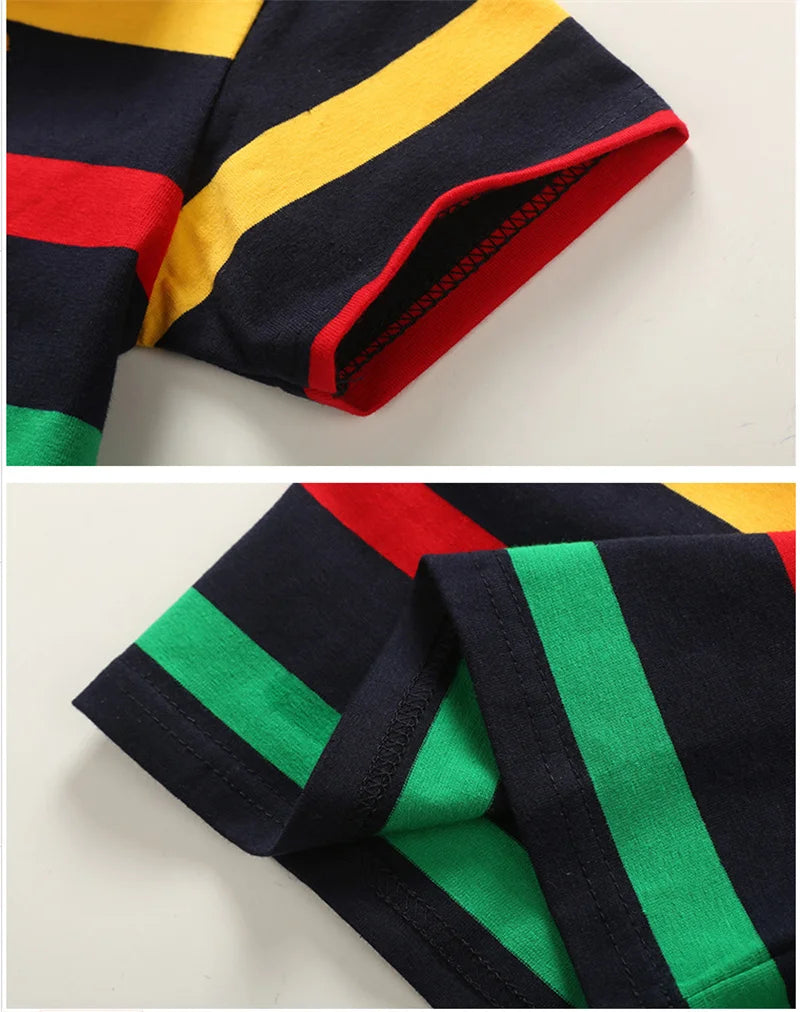 T-shirt For Boys Summer Children Short Sleeve Stripe Tees Cartoon Bear Embroidery Tops Teens Breathable Polo Shirt Kids Clothing