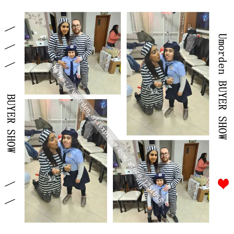 Umorden Carnival Party Halloween Prisoner Costume for Men Women Kids Child Family Violent Prisoner Costumes Fancy Dresses Set