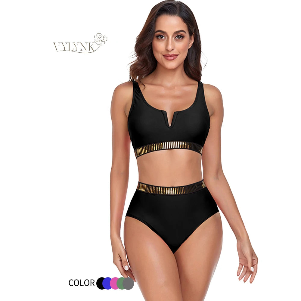 VYLYNK Bikinis Sets Swimsuit 2025 Women Two-Piece Swimwear High Waist Bathers Female Short Tankini Pool Swimming suit Beachwear