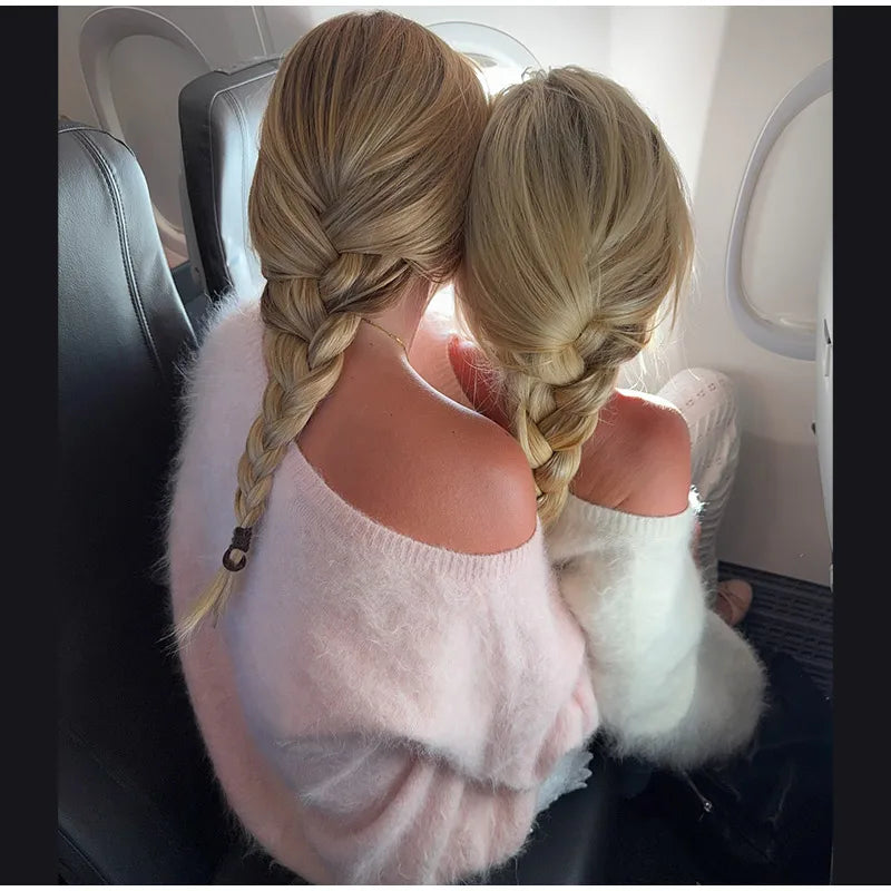Women Solid Off Shoulder Pullover Fashion Classic Full Sleeve Loose Knitted Mohair Knitwear Lady High Street Autumn Sweaters